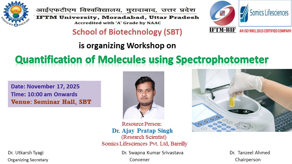 | 17-11-2025 | A workshop on Quantification of Molecules using Spectrophotometer | |