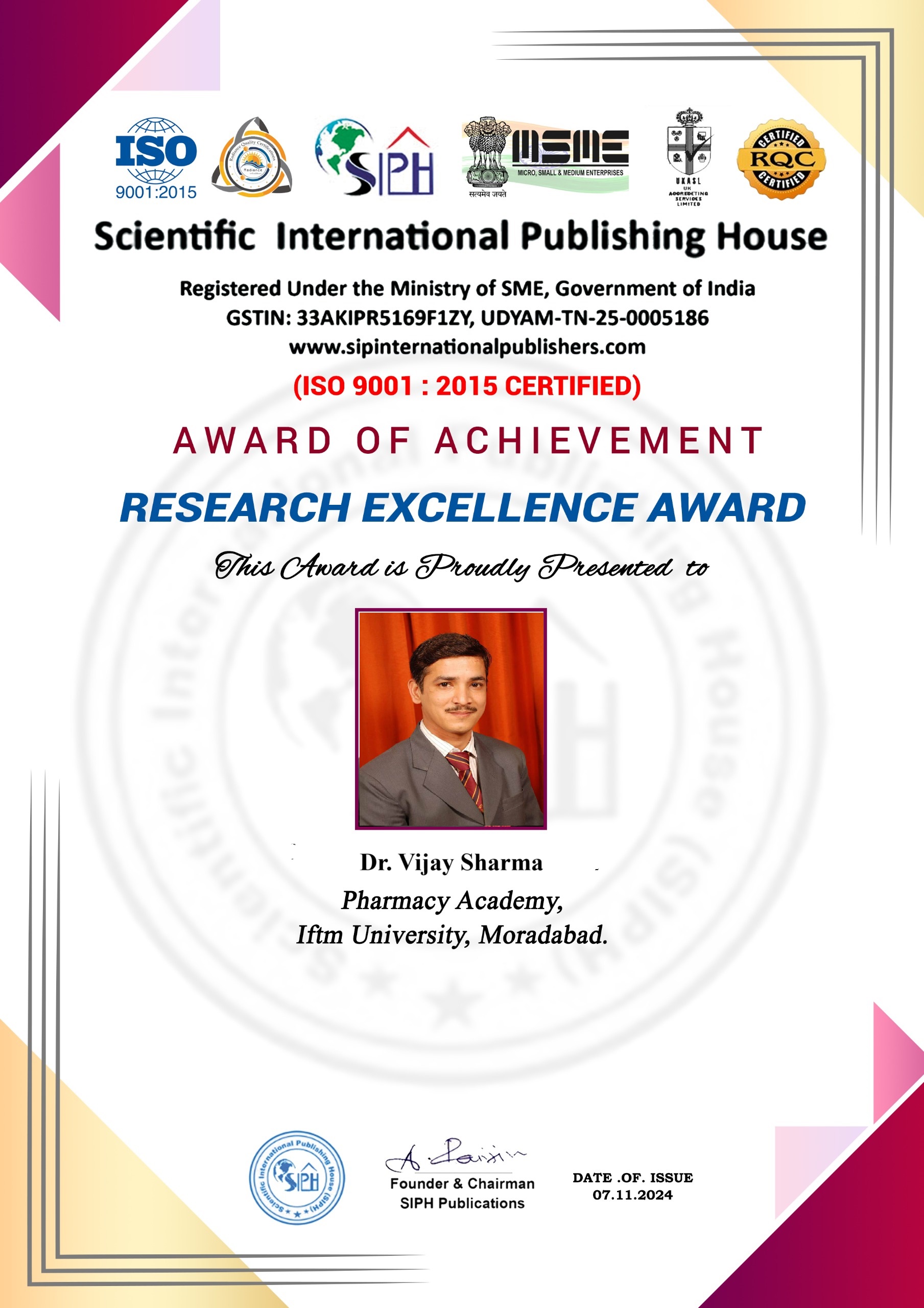 | 46 | VIJAY SHARMA | RESEARCH EXCELLENCE AWARD | SIPH | 2024-11-07 | |