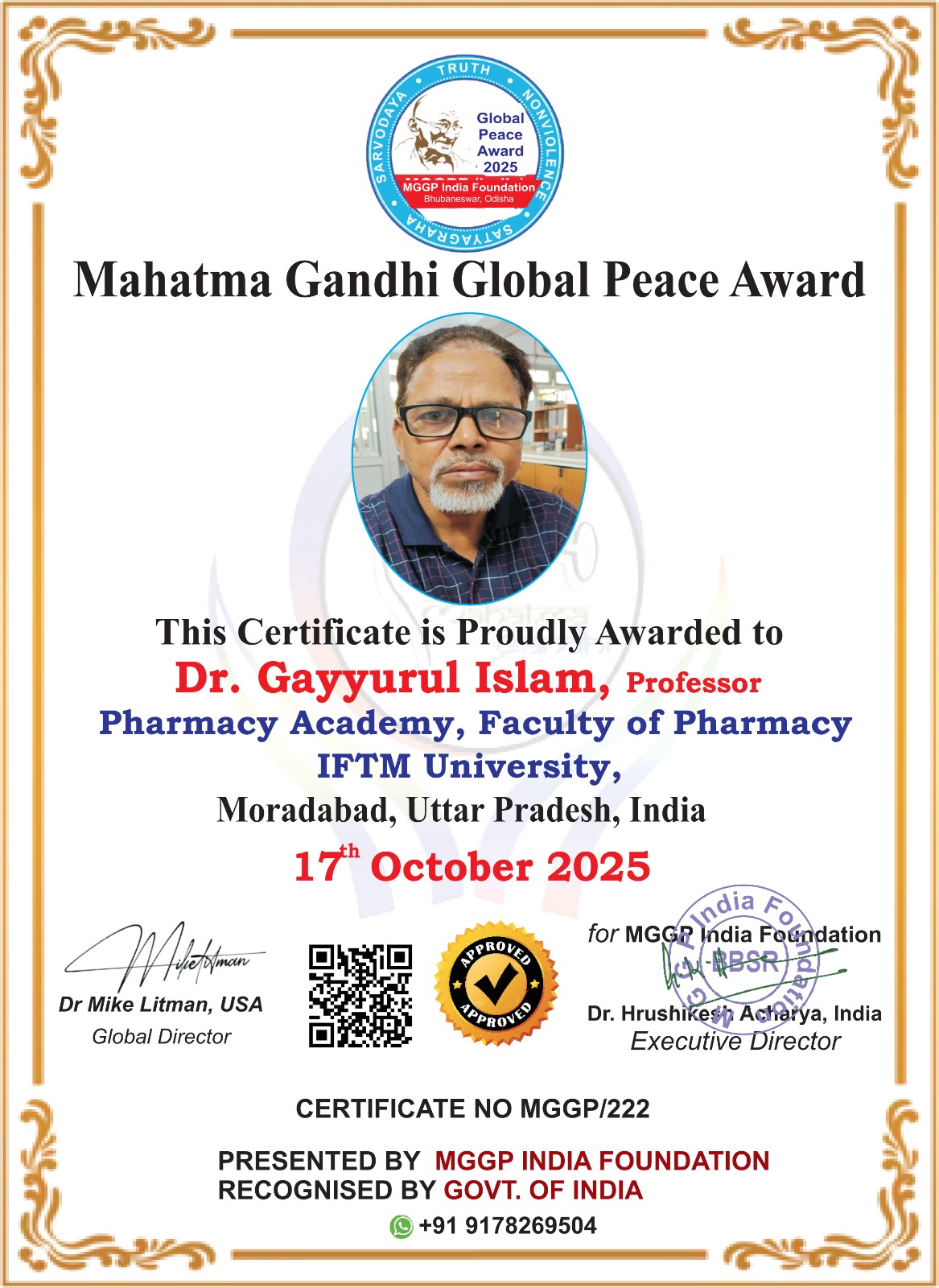 | 23 | DR GAYYURUL ISLAM | MAHATMA GANDHI GLOBAL PEACE AWARD | GLOBAL PEACE AWARD 2025 | 2025-10-17 | |