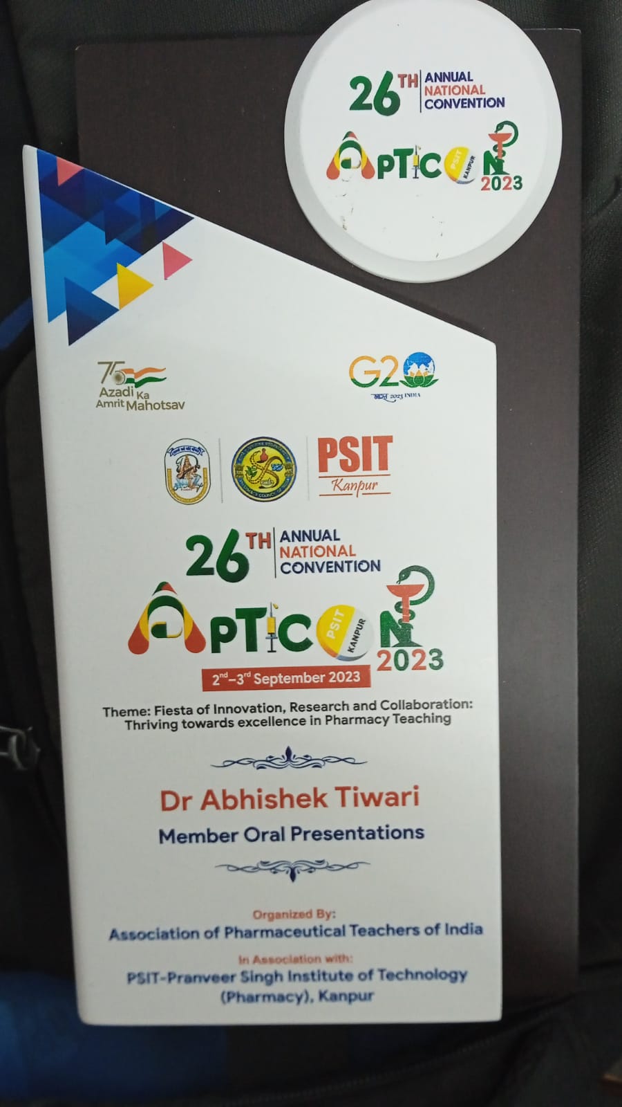 | 126 | DR. ABHISHEK TIWARI | MEMBER ORAL PRESENTATIONS | APTICON-2023 | 2023-09-03 | |