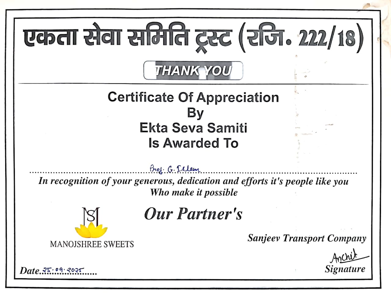 19DR. PUNEET KHANNACERTIFICATE OF HONORTEACHER APPRECIATION AWARD2025-09-19